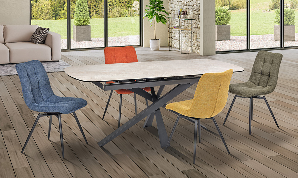 L.190/240 H.76 P.95 cm – 1 allonge centrale de 50 cm système auto levant rotatif.